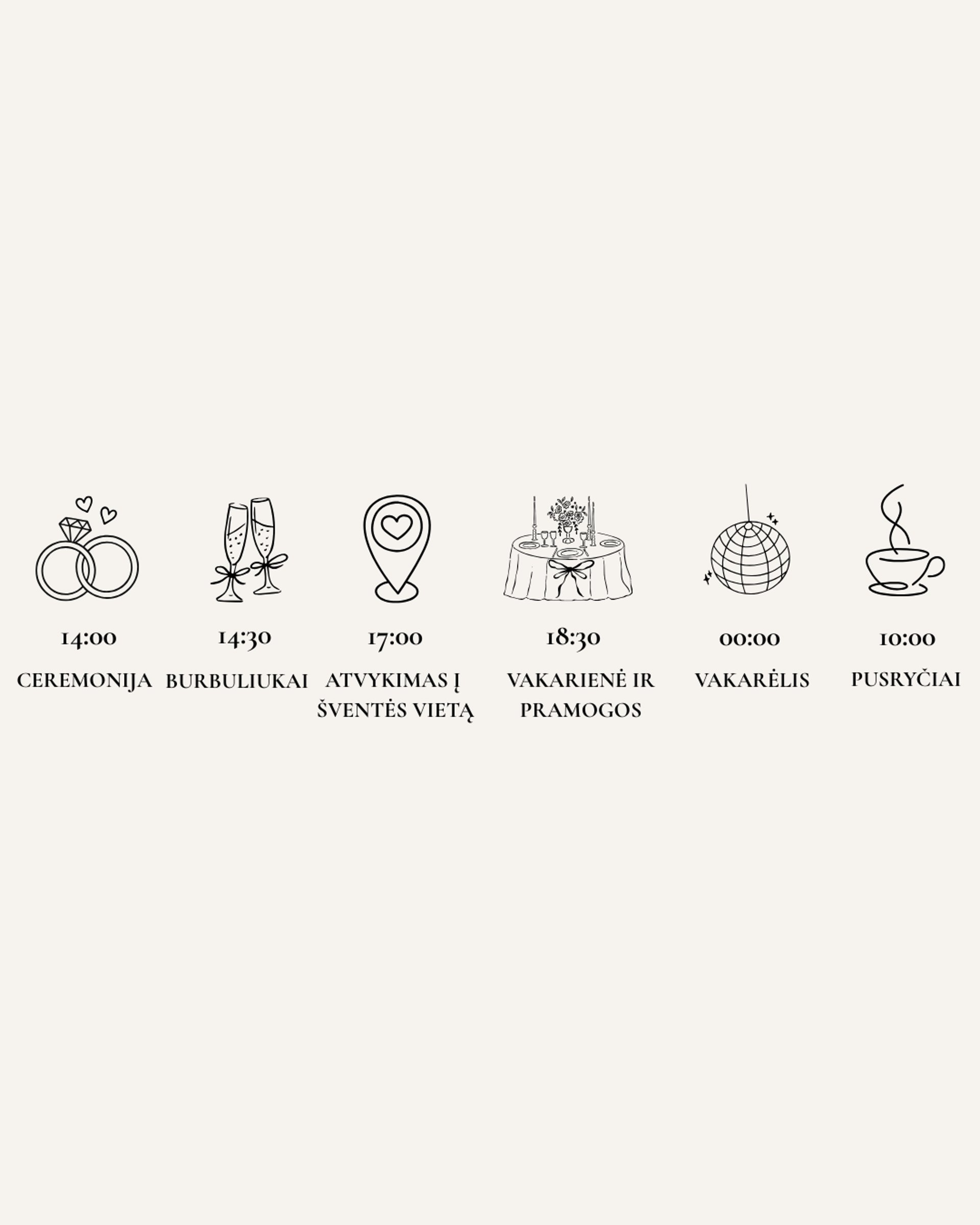 Po ceremonijos kviesime šampano taurei, po jos turėsite laisvo laiko.